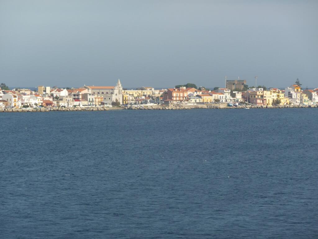 Buildings along the coast of Sicilly. The Strait of Messina is only 2 miles wide between Sicily and the toe of Italy